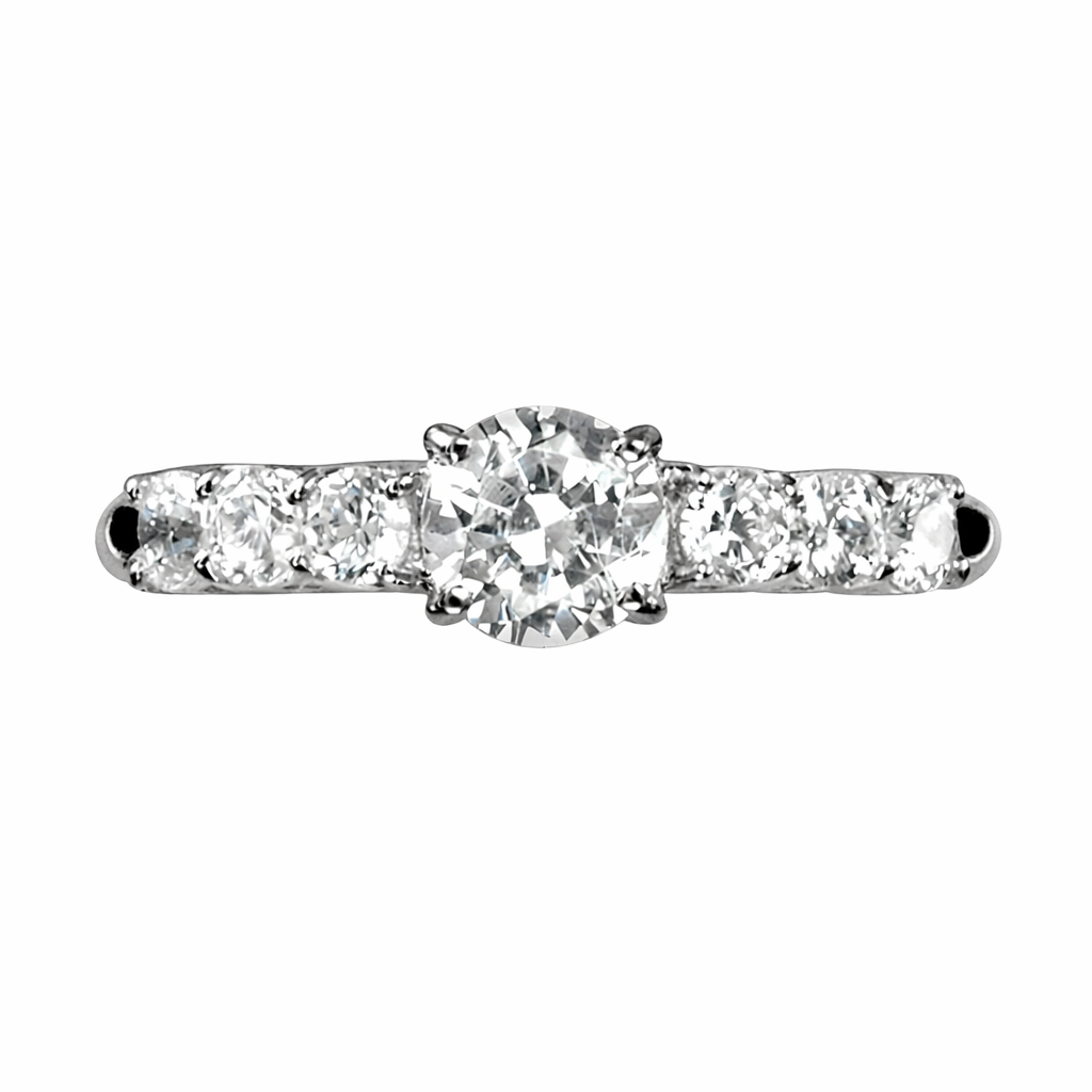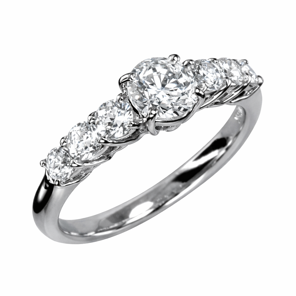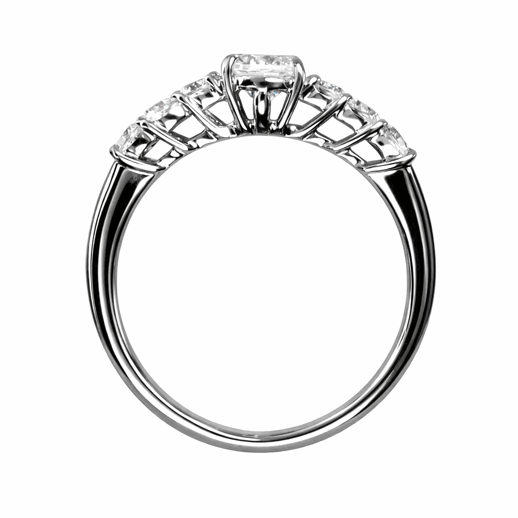 中央のダイヤを主役に、左右それぞれ3石ずつ、計6石の脇石ダイヤをセッティング。